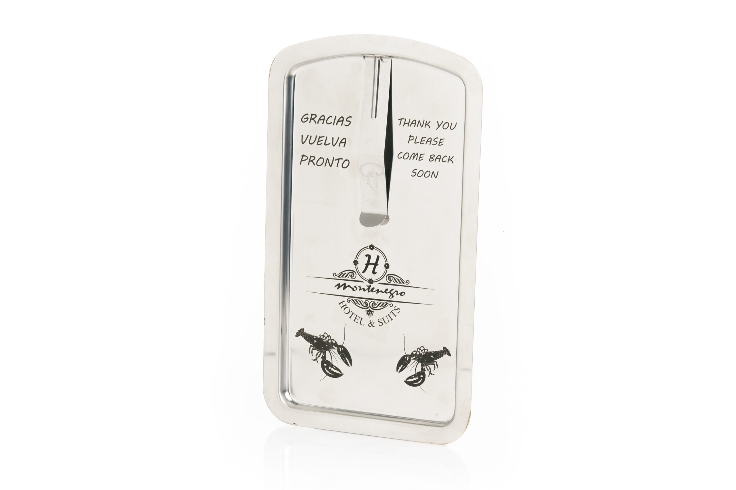 Optimiza la organización y eficiencia en tu hotel o restaurante con nuestra Bandeja de Cambio con Pinza Personalizada. Fabricada con materiales de alta calidad, esta bandeja es duradera y fácil de limpiar, ideal para el manejo de efectivo. La pinza integrada asegura billetes y documentos importantes, manteniéndolos en su lugar de manera segura. Personalízala con el logotipo de tu establecimiento para un toque profesional y único. Perfecta para áreas de servicio y recepción, proporcionando una solución práctica y elegante para la gestión diaria.